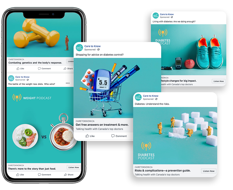 We created a clean and relevant visual brand identity for a program that needed thumb-stopping power to engage consumers. We ran a highly-optimized paid social media campaign. With impactful imagery and intriguing headlines, we captured consumer attention and drove conversions by enticing them to listen, watch and read our doctor-led podcasts, videos and print resources.
